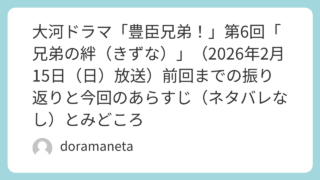 NHKドラマ 大河ドラマ「豊臣兄弟!」第6回「兄弟の絆(きずな)」(2026年2月15日(日)放送)前回までの振り返りと今回のあらすじ(ネタバレなし)とみどころ