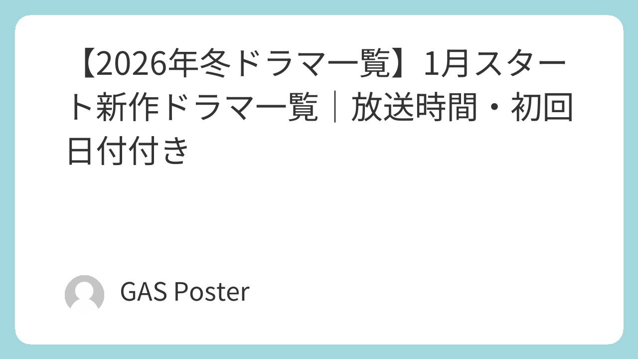 関連キーワード:2026年冬ドラマ, 2026冬ドラマ放送日, 冬ドラマ一覧, 日曜劇場, NHK大河, 月9ドラマ, 深夜ドラマ