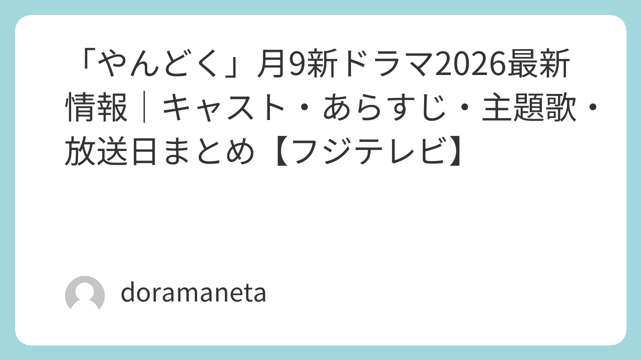 「やんどく」月9新ドラマ2026最新情報|キャスト・あらすじ・主題歌・放送日まとめ【フジテレビ】