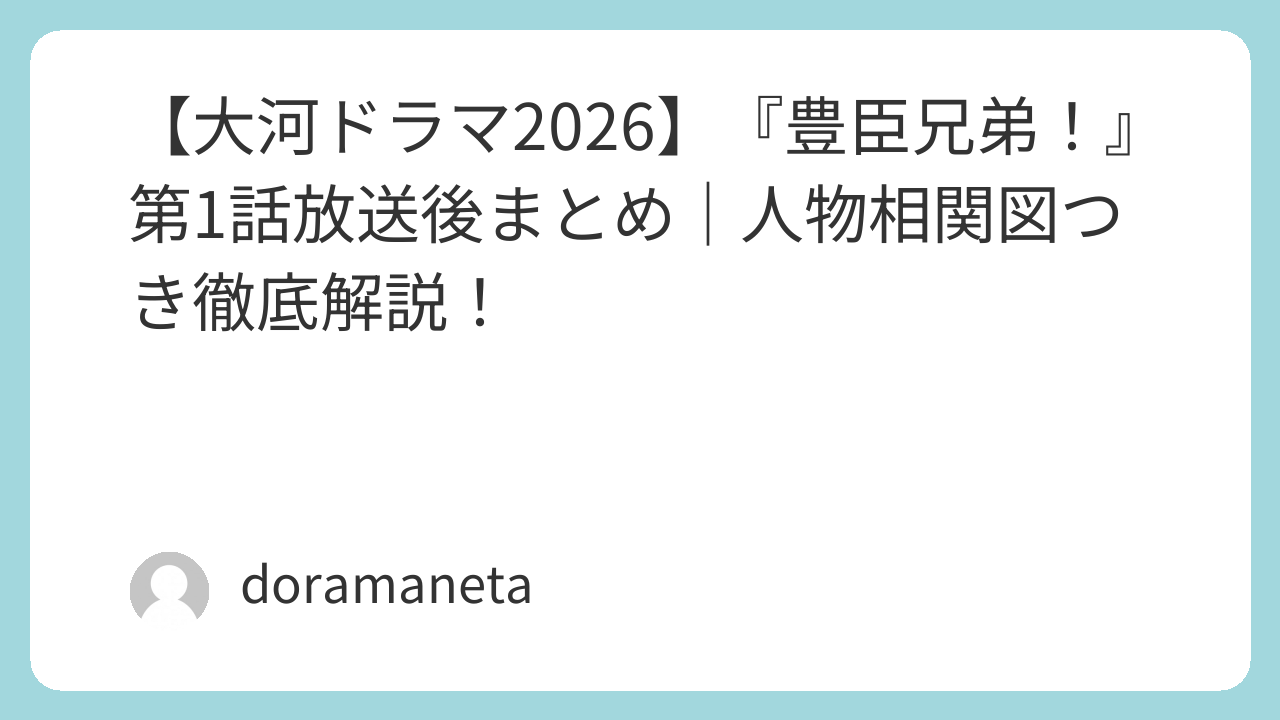 2026年NHK大河ドラマ『豊臣兄弟!』。第1話「二匹の猿」放送後、豊臣兄弟を中心に描かれる人間模様が話題に!この記事では、人物相関図つきで関係性と見どころを徹底解説します。
