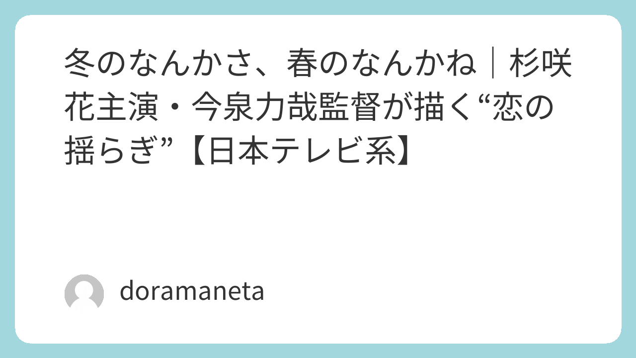 この冬いちばん“静かに心を動かす恋愛ドラマ”として注目の作品です。