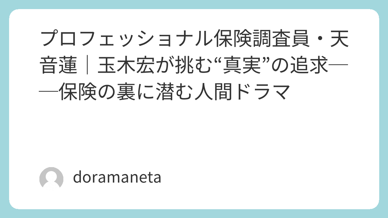 『プロフェッショナル保険調査員・天音蓮』は、単なる推理ドラマではない。保険金という“お金”を軸に、人間の誠実さ・裏切り・愛・贖罪といった感情が巧みに描かれている。「誰もが嘘をつく。しかし、真実を信じたい」——そんな普遍的なテーマが視聴者の心を掴む。
