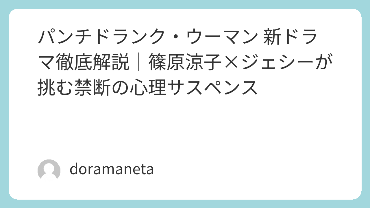 『パンチドランク・ウーマン ―脱獄まであと××日―』は、規律に縛られた女性が“愛と罪”の狭間でもがく姿を描く濃密な心理サスペンス。篠原涼子さんの迫真の演技と、ジェシーさんの新境地となる演技が融合し、見応え抜群のドラマに仕上がっています。