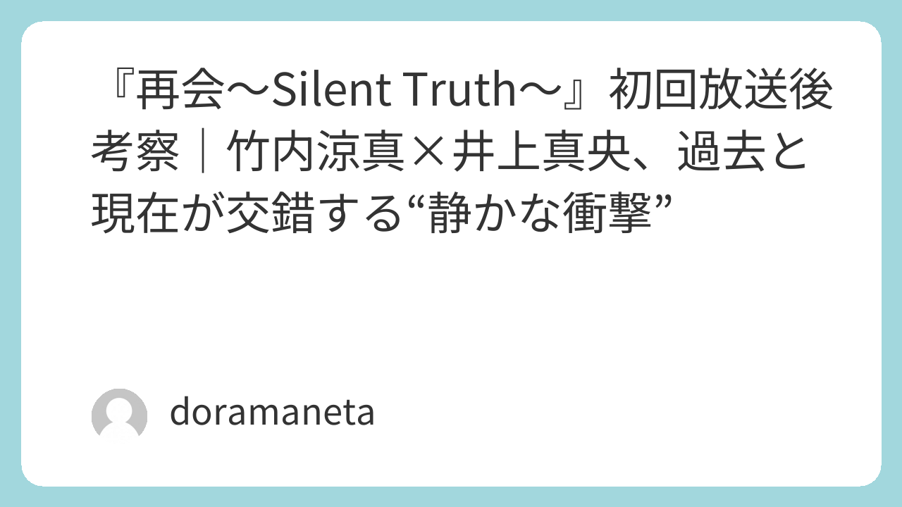 2026年1月13日に放送が始まったテレビ朝日系ドラマ『再会〜Silent Truth〜』。主演は竹内涼真、ヒロインに井上真央という実力派俳優の共演で、初回からSNSを中心に大きな話題を呼んでいる。タイトルの「再会」が意味するものは何か、そして静かに漂う“真実の重み”とは──。この記事では、初回放送を見終えた視聴者たちの考察とともに、物語の核心に迫っていく。