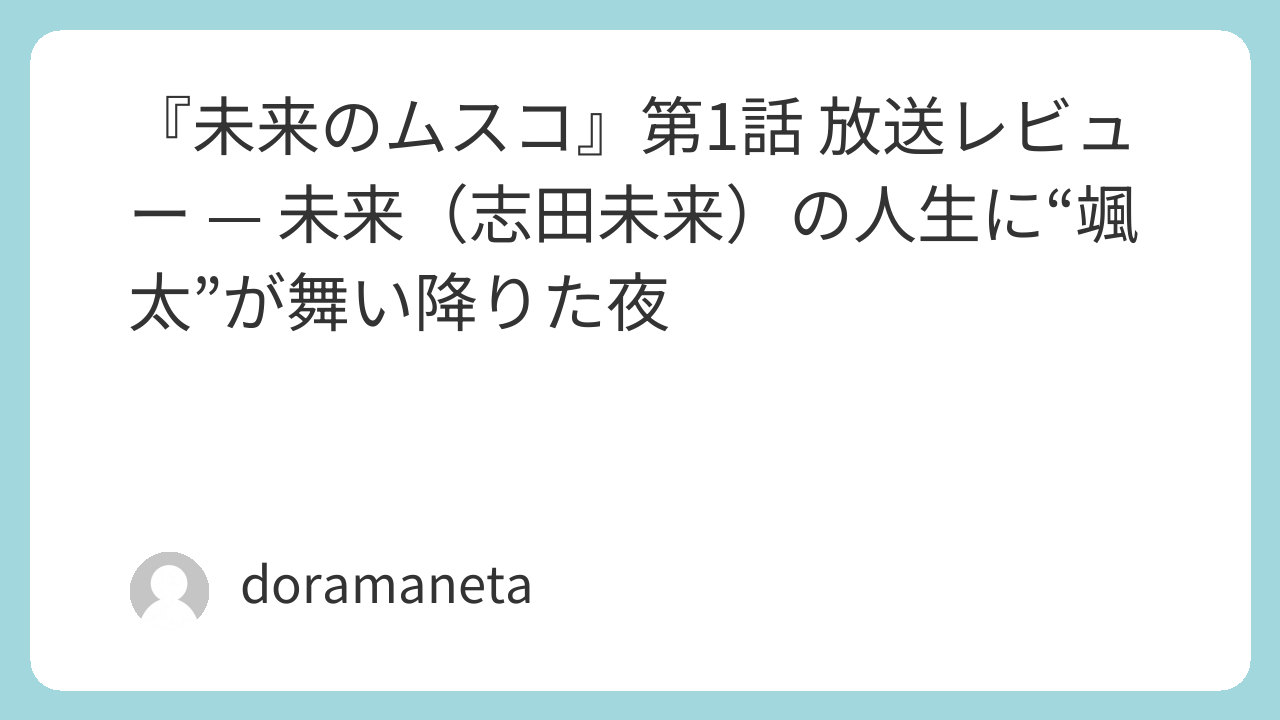 第1話は単なる“タイムスリップ奇跡”の導入に留まらず、主人公の人生が大きく揺れ動く心のドラマとして描かれた。視聴者は未来と颯太のやり取りを通じて、「人の心が成長する瞬間」を目撃したような気持ちになったはずだ。恋愛、夢、親子というテーマを同時に描くことで、幅広い世代の視聴者を引きつける構成となっている。