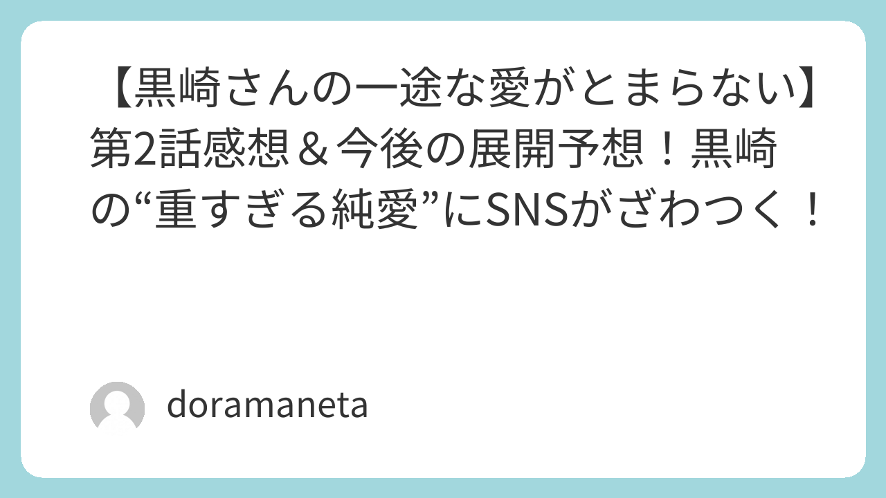 第2話では、黒崎さんの“まっすぐすぎる愛”が炸裂し、視聴者の間で「怖いけど可愛い」「一途がすぎて尊い」と話題になっています。