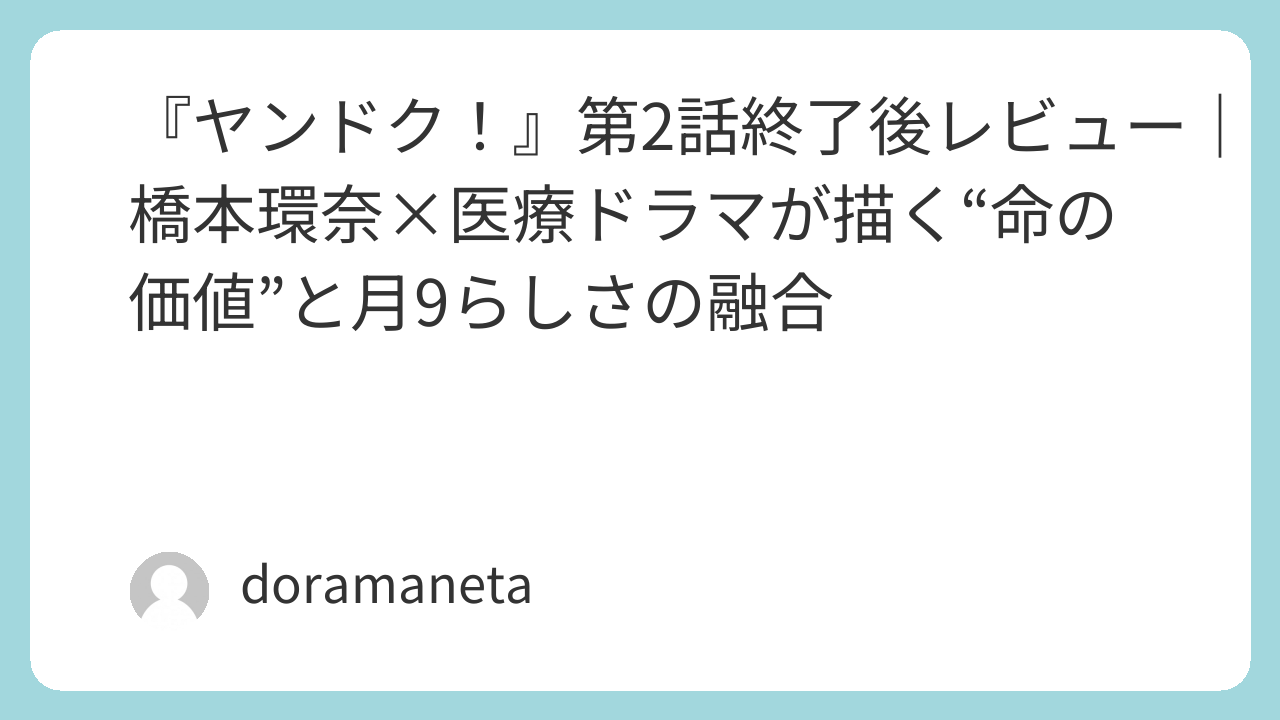 第2話までの『ヤンドク!』は、主人公・田上湖音波の医師としての信念が浮き彫りになった回でした。単なる医療ドラマを超え、 命の価値・患者の想い・医療倫理 という重いテーマを月9の文脈で描き出し、多くの視聴者の共感と議論を呼んでいます。