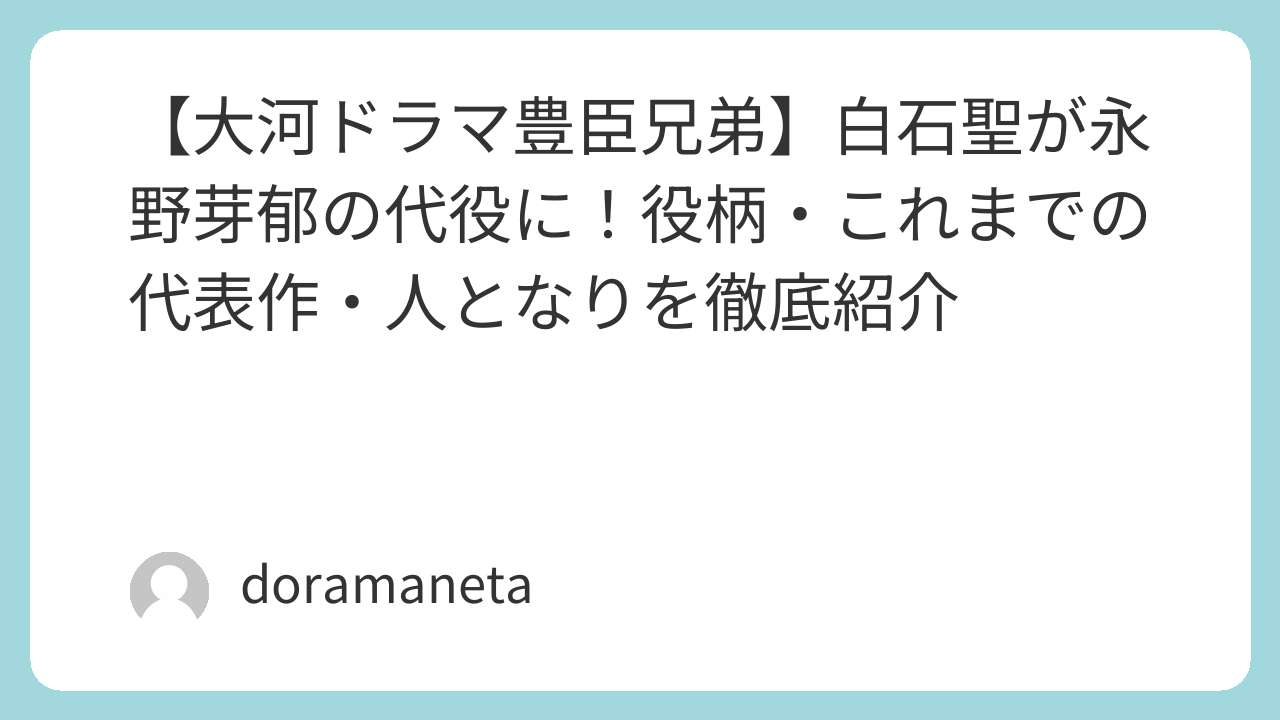 白石聖さんにとって『豊臣兄弟!』は初の大河ドラマ出演であり、キャリアの大きな節目です。