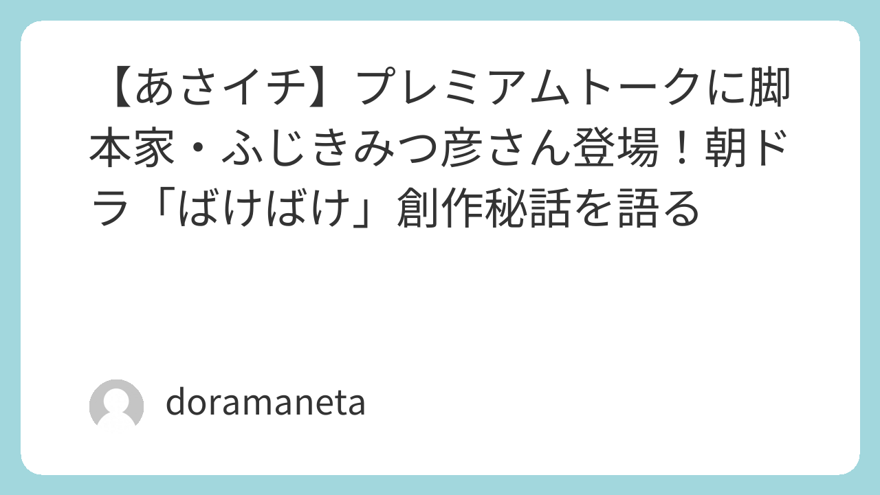『あさイチ』のプレミアムトークでは、ふじきみつ彦さんが 脚本づくりのこだわり や 登場人物に込めた想い を語りました。