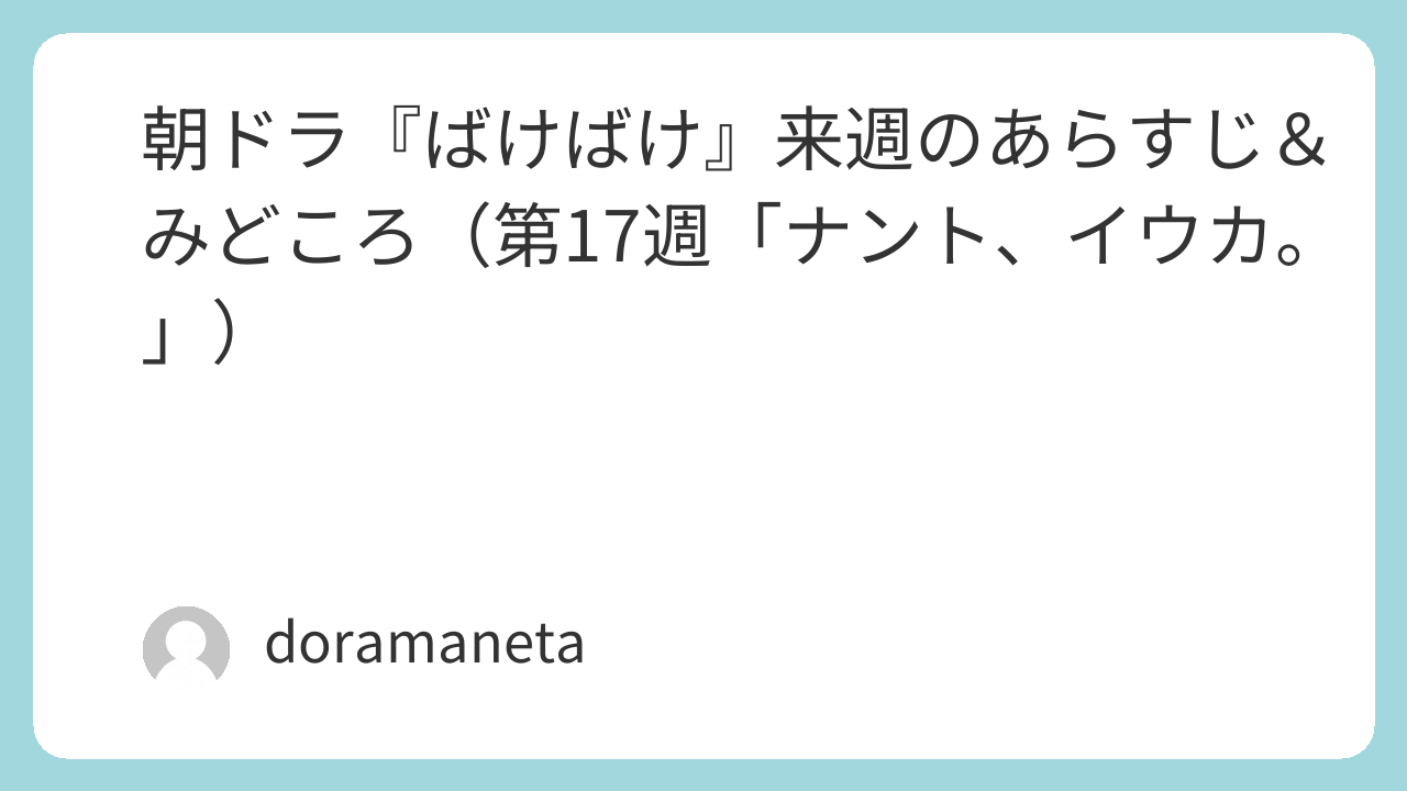 Q. 来週の朝ドラ『ばけばけ』の放送は何週?