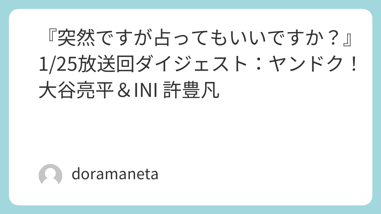 深夜バラエティ 突然ですが占ってもいいですか? の2026年1月25日(日)放送回は、月9ドラマ ヤンドク! と連動。ゲストは俳優の 大谷亮平、グローバルボーイズグループ INI のメンバー 許豊凡。占いはホロスコープの使い手 彌彌告(MiMiKO) が担当し、二人の現在地とこれからを言葉で紐解きました。放送は フジテレビ 系列の深夜枠。
