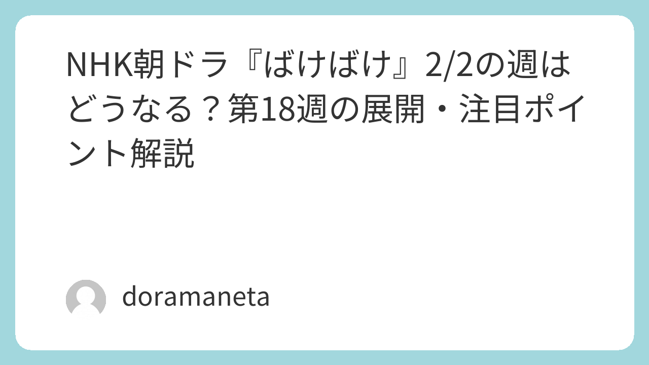「良いニュース」が個人の輪郭を奪うことがある——そんな社会の機微を、朝ドラの生活感で描く回。話題性に流されず、誰の視点で語られているかを意識して見ると、細部の台詞やカット割りがより刺さります。