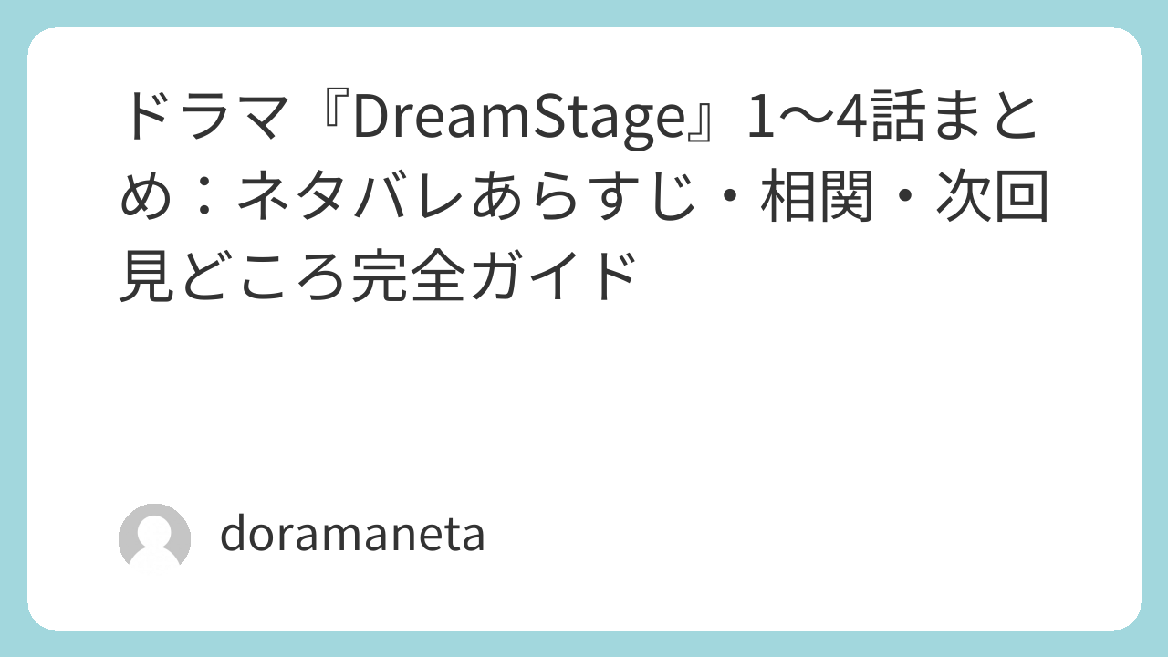 ドラマ『DreamStage』1〜4話まとめ:ネタバレあらすじ・相関・次回見どころ完全ガイド