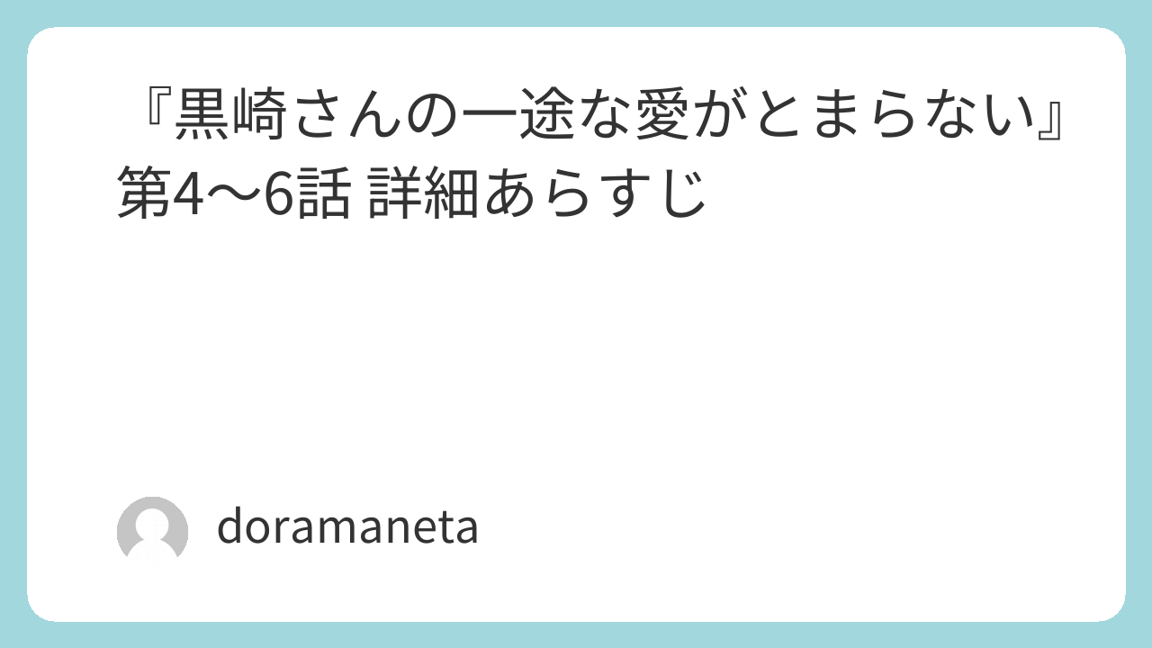 公式の各話ページ・番組情報:黒崎さんの一途な愛がとまらないのSTORY・相関図・記事ページをご参照ください。